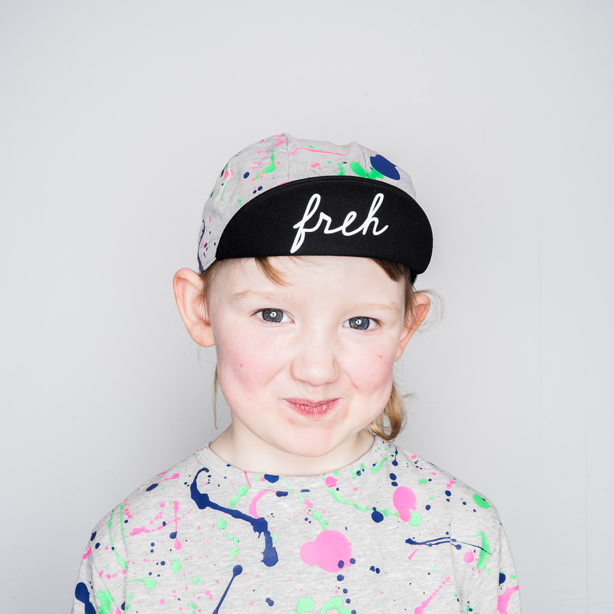 Die Cycling Cap ist unser erstes Produkt unter dem Label freh. Für die verschiedenen Designs, die bei uns im Atelier in Kreuzberg im Siebdruckverfahren per Hand gedruckt werden, wird ausschließlich schadstofffreie Farben verwendet. Unsere Größen habe wir so konzipiert, dass sie vom Baby bis zum Kleinkind passen.